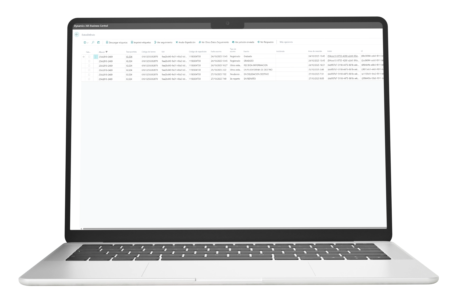 Nuestra solución integrada en el ERP no solo automatiza el proceso de etiquetado y recogida, sino que también te brinda un control total desde un solo lugar. Podrás monitorear el estado de cada envío en tiempo real, reducir errores humanos y mejorar la coordinación con los transportistas, garantizando que tus pedidos lleguen a tiempo y de forma segura.