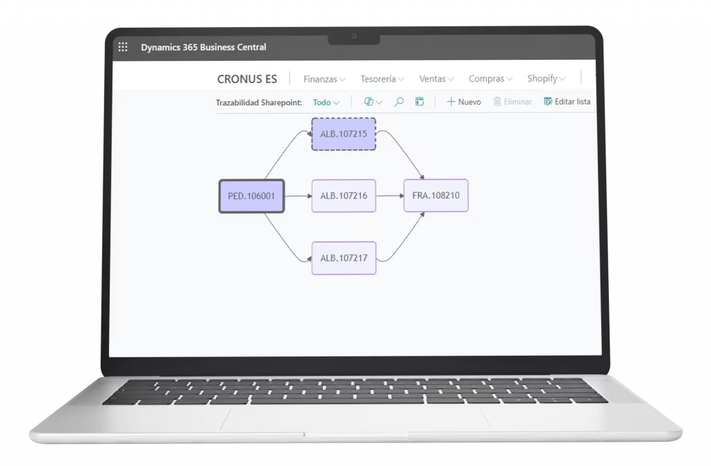Gracias a la gestión avanzada de metadatos en SharePoint, todos los archivos vinculados a Business Central se etiquetan automáticamente con claves como número de pedido u otra categoría personalizable. Esto permite filtrar, buscar y agrupar la documentación relacionada sin esfuerzo, agilizando la consulta de históricos y mejorando la trazabilidad operativa.